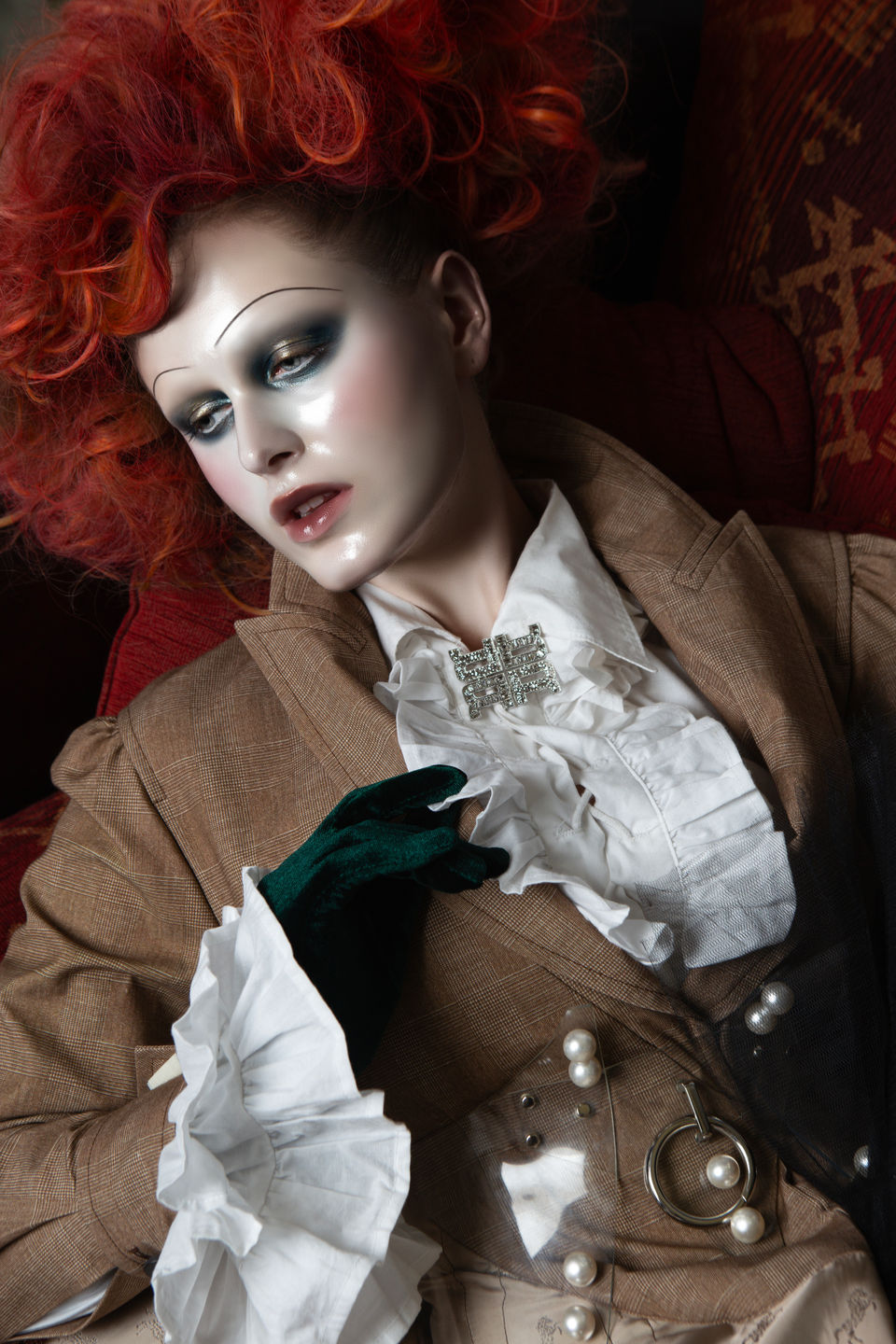 In «Gothic Chic» elegant and dramatic attire aims to express female power. Pat McGrath’s famous glass skin functions as a mask for suppressing one’s s emotions and hiding behind a strong facade.